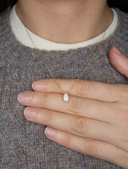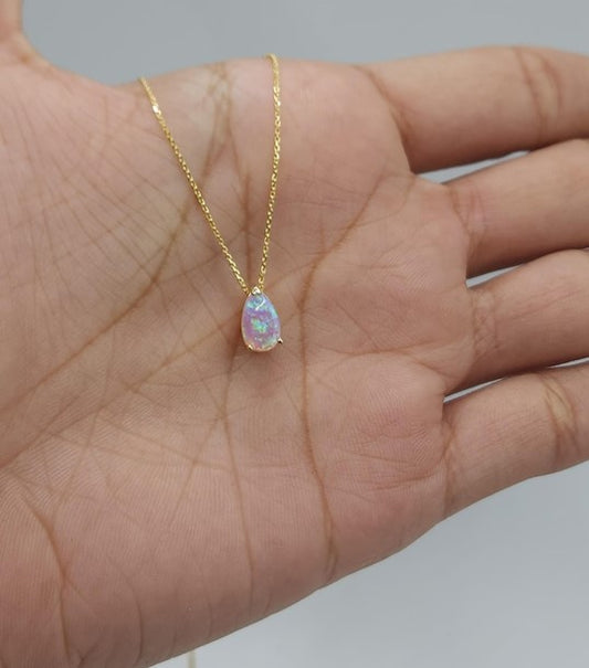 14Kt Gold Pink Opal Teardrop Pendant Necklace