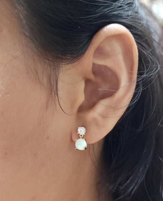 14Kt Gold Created Opal & Lab Grown Diamond Round Stud Earrings