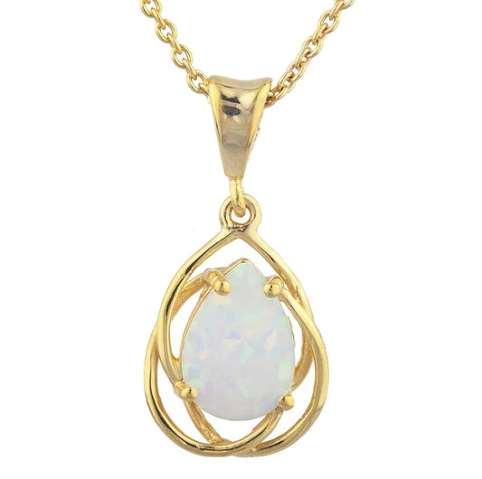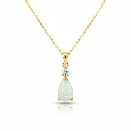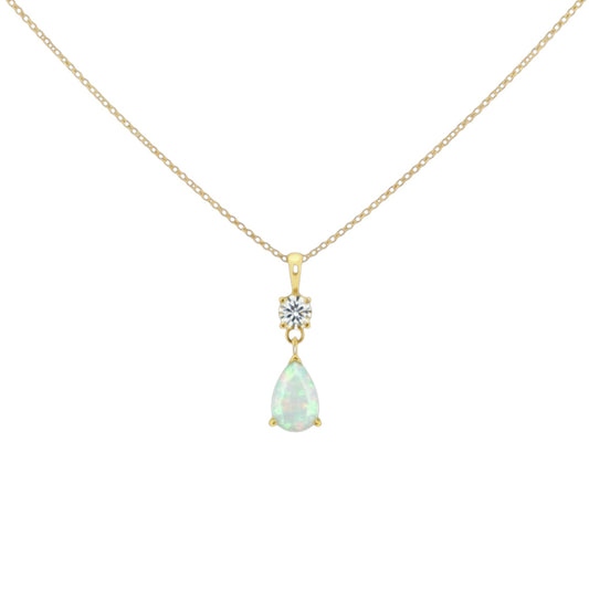 14Kt Gold Created Opal Teardrop & Lab Grown Diamond Pendant