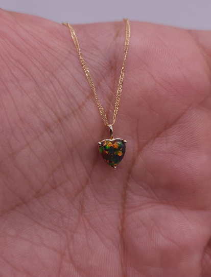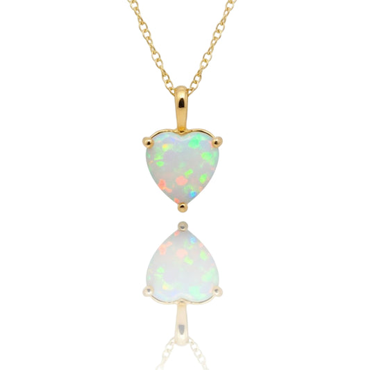 14Kt Gold Genuine Opal Heart Pendant Necklace