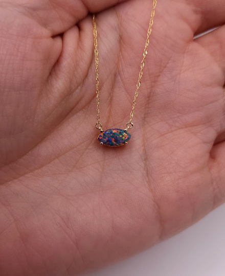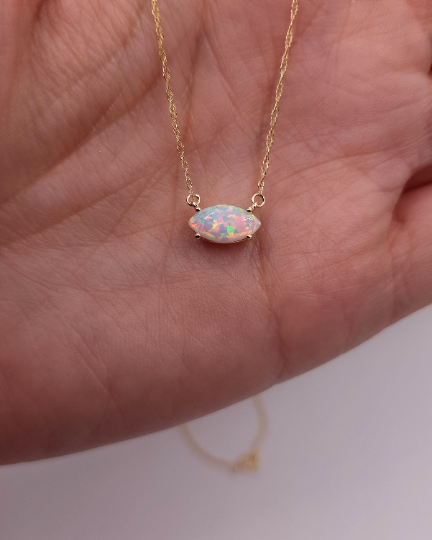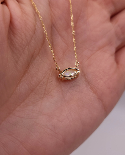 14Kt Gold Genuine Natural Opal Marquise Pendant Necklace