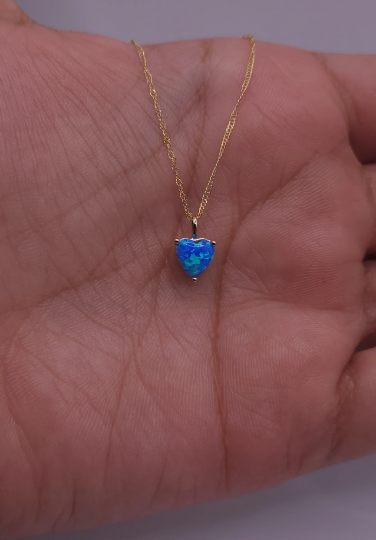 14Kt Gold Blue Opal Heart Pendant Necklace