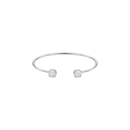 14Kt Gold Opal and Lab Grown Diamond Open Cuff Bangle