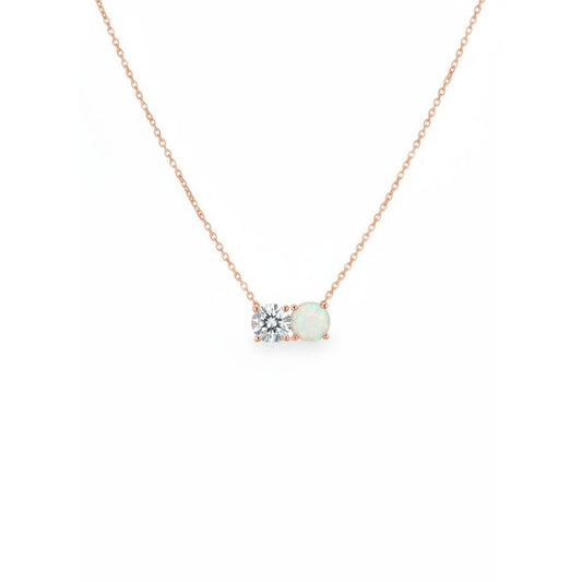 14Kt Gold 2 Stone 0.50Ct Lab Grown Diamond and Opal Round Pendant