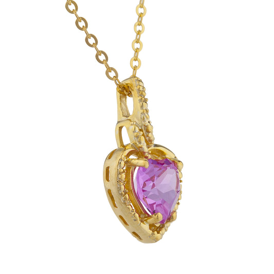 14Kt Gold Pink Sapphire Heart Design Pendant Necklace