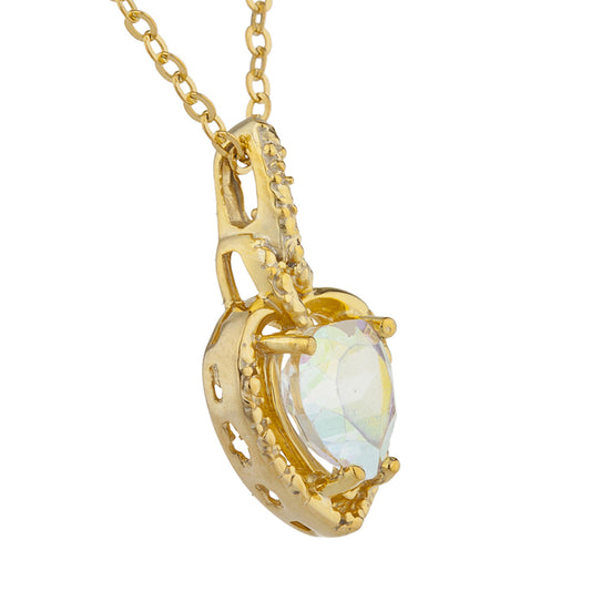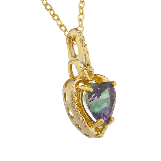 14Kt Gold Natural Mystic Topaz Heart Design Pendant Necklace