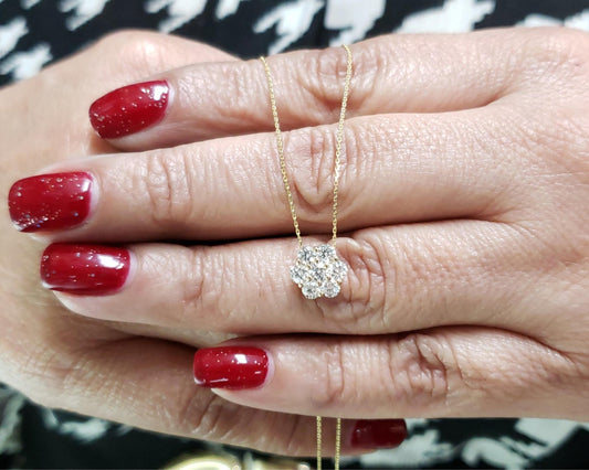 14Kt Gold 0.70 Ct Genuine Natural Diamond Cluster Pendant Necklace