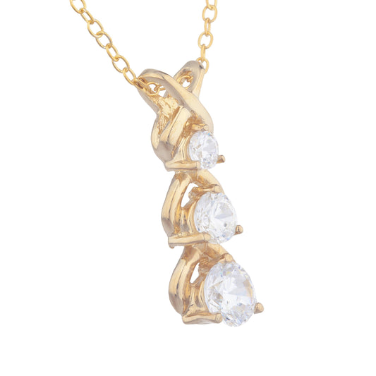 14Kt Gold 0.60 Ct Genuine Natural Diamond 3 Stone Pendant Necklace