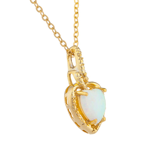 14Kt Gold Pink Opal Heart Design Pendant Necklace