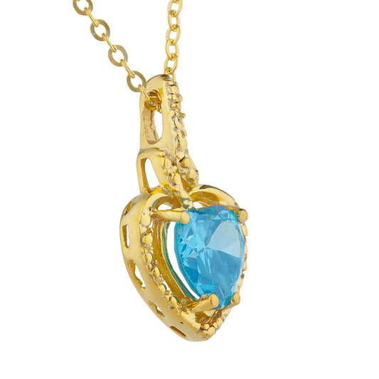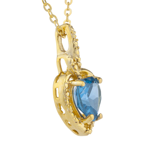 14Kt Gold Swiss Blue Topaz Heart Design Pendant Necklace