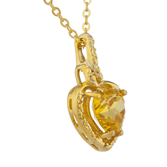 14Kt Gold Yellow Citrine Heart Design Pendant Necklace