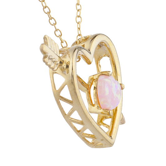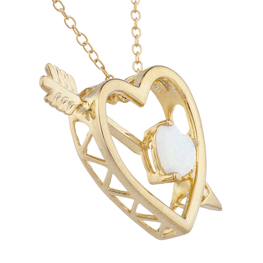 14Kt Gold Genuine Opal Heart Bow & Arrow Pendant Necklace