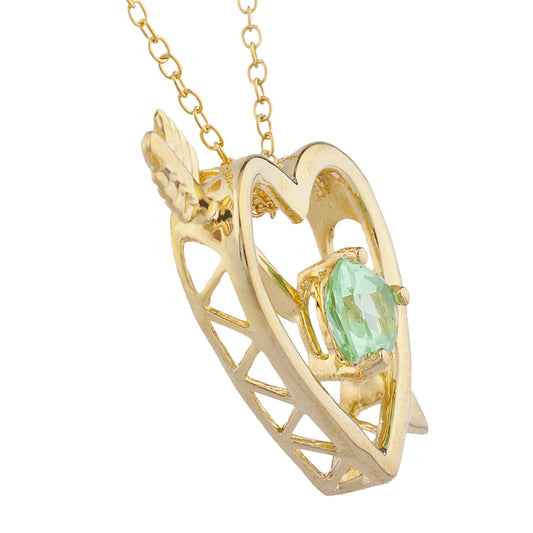 14Kt Gold Green Sapphire Heart Bow & Arrow Pendant Necklace