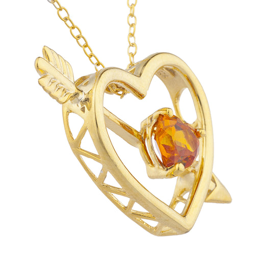 14Kt Gold Orange Citrine Heart Bow & Arrow Pendant Necklace