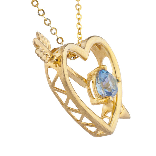14Kt Gold Natural Blue Mystic Topaz Heart Bow & Arrow Pendant Necklace