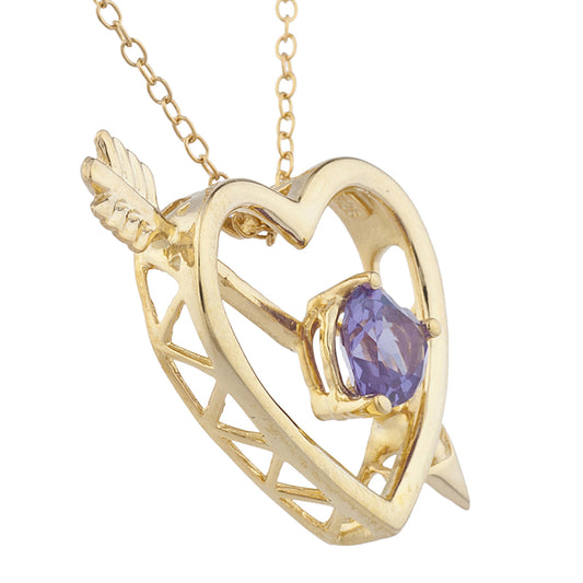 14Kt Gold Alexandrite Heart Bow & Arrow Pendant Necklace