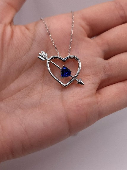 14Kt Gold Blue Sapphire Heart Bow & Arrow Pendant Necklace