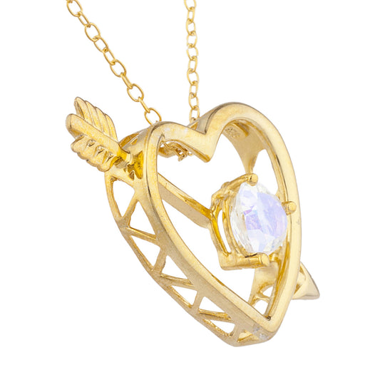 14Kt Gold Natural Mystic Topaz Heart Bow & Arrow Pendant Necklace