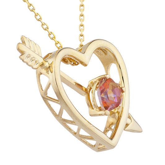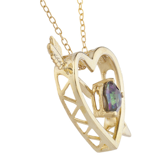 14Kt Gold Natural Ecstasy Mystic Topaz Heart Bow & Arrow Pendant Necklace