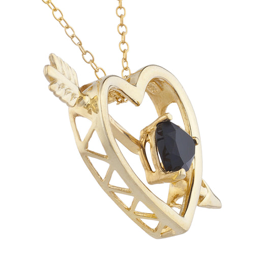 14Kt Gold Black Opal Heart Bow & Arrow Pendant Necklace