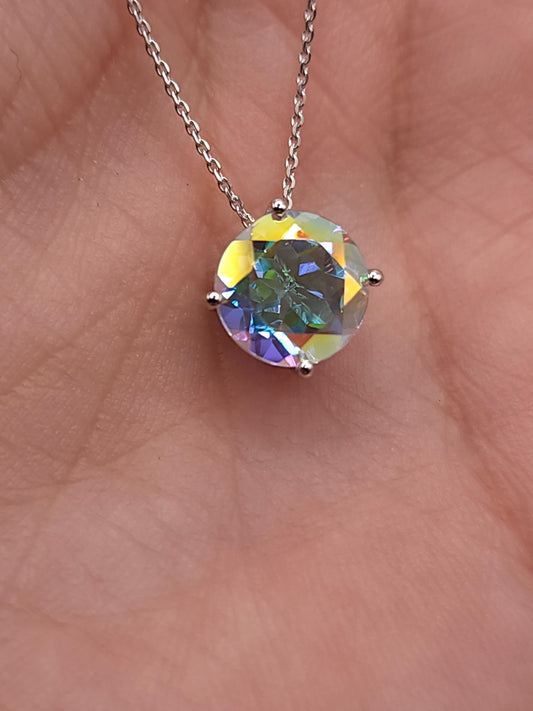 14Kt Gold Natural Mystic Topaz Round Pendant Necklace