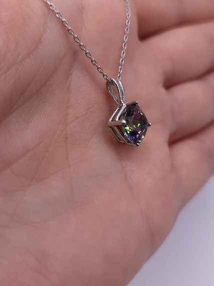 14Kt Gold Natural Mercury Mist Mystic Topaz Princess Cut Pendant Necklace