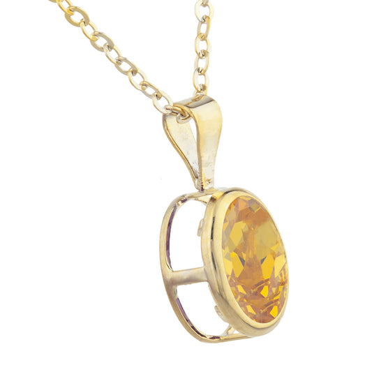 14Kt Gold Yellow Citrine Oval Bezel Pendant Necklace