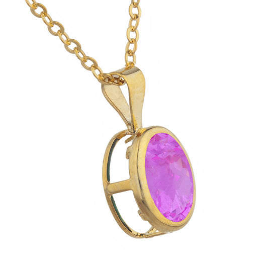 14Kt Gold Pink Sapphire Oval Bezel Pendant Necklace