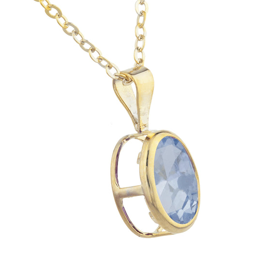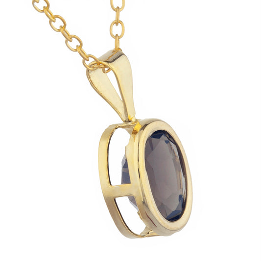 14Kt Gold Tanzanite Oval Bezel Pendant Necklace