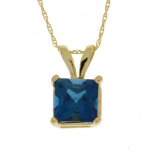14Kt Gold Blue Topaz Princess Cut Pendant Necklace