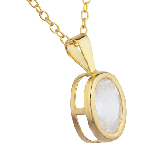 14Kt Gold Zirconia Oval Bezel Pendant Necklace