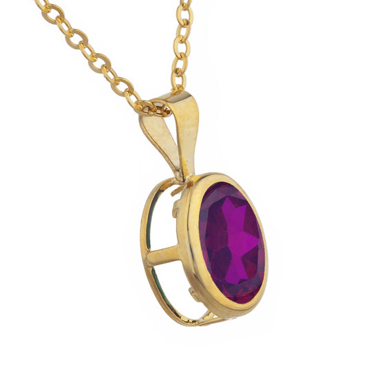 14Kt Gold Created Ruby Oval Bezel Pendant Necklace