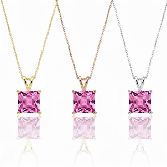14Kt Gold Pink Sapphire Princess Cut Pendant Necklace