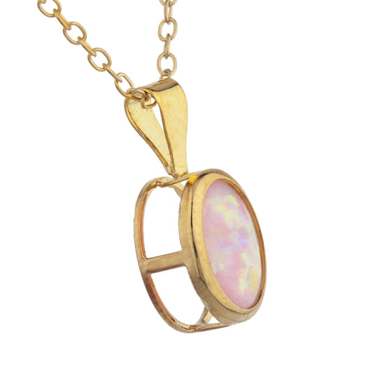14Kt Gold Pink Opal Oval Bezel Pendant Necklace