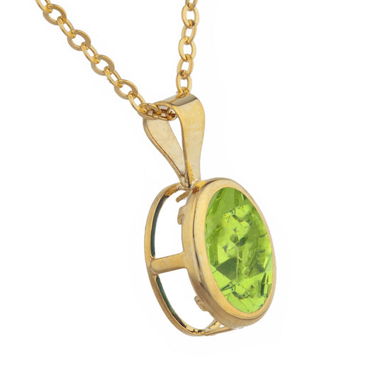 14Kt Gold Peridot Oval Bezel Pendant Necklace