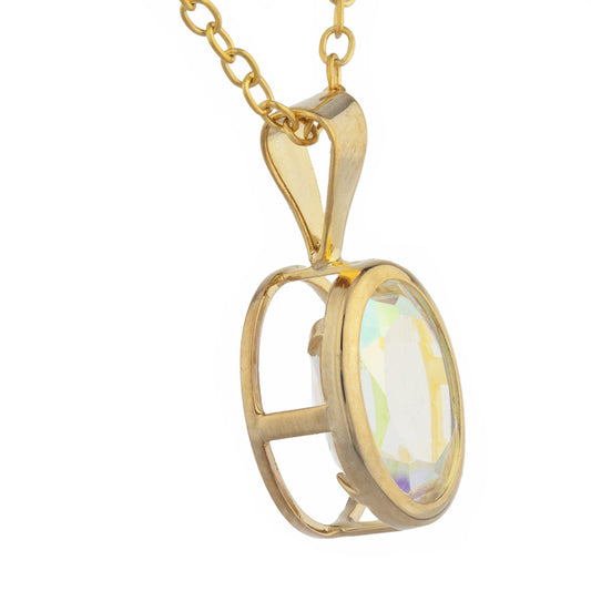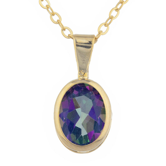 14Kt Gold Natural Mystic Topaz Oval Bezel Pendant Necklace
