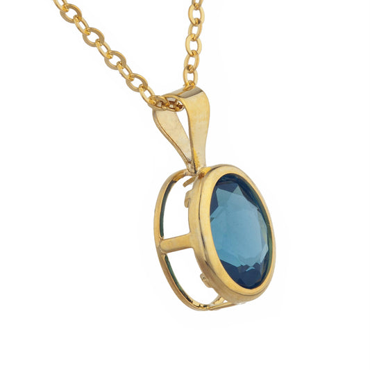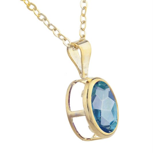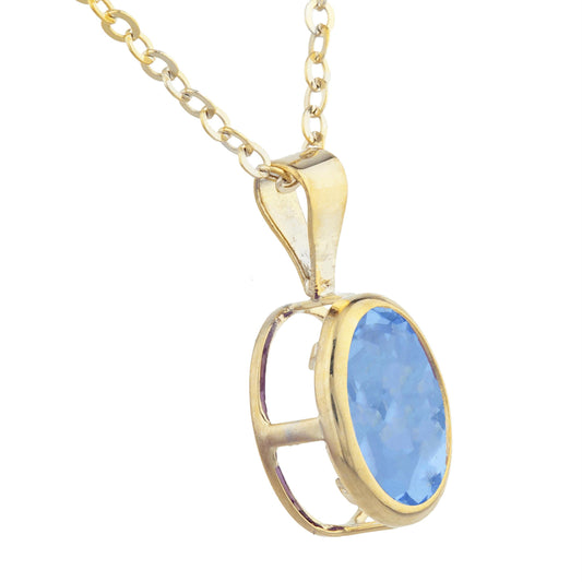 14Kt Gold Blue Topaz Oval Bezel Pendant Necklace