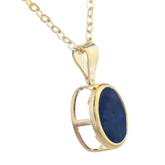 14Kt Gold Blue Opal Oval Bezel Pendant Necklace