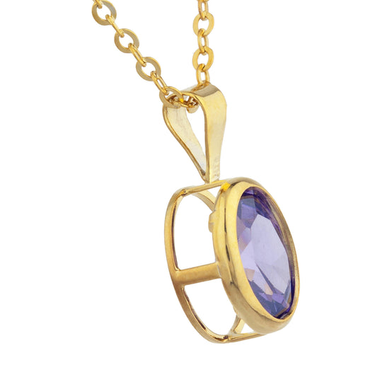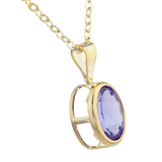 14Kt Gold Amethyst Oval Bezel Pendant Necklace