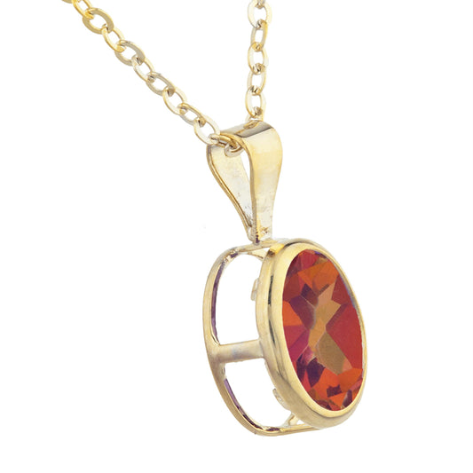 14Kt Gold Natural Ecstasy Mystic Topaz Oval Bezel Pendant Necklace