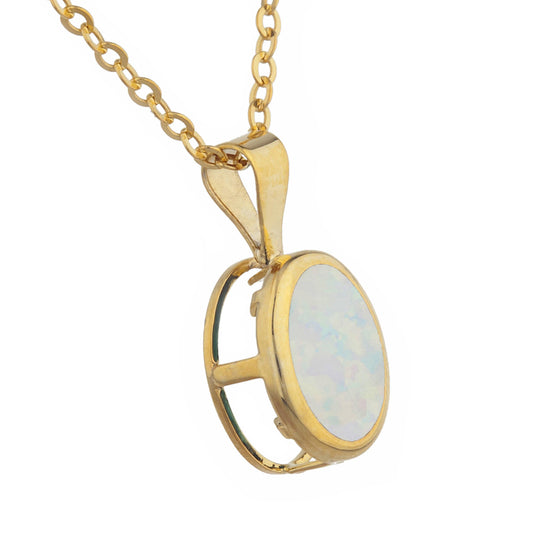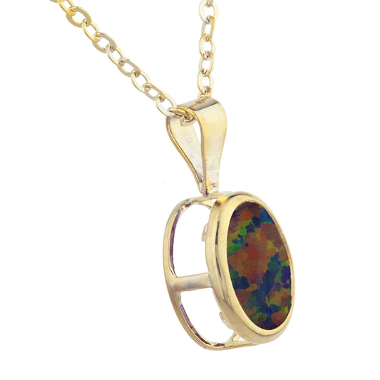 14Kt Gold Genuine Opal Oval Bezel Pendant Necklace