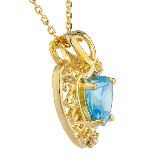14Kt Gold Swiss Blue Topaz Heart Design Pendant Necklace