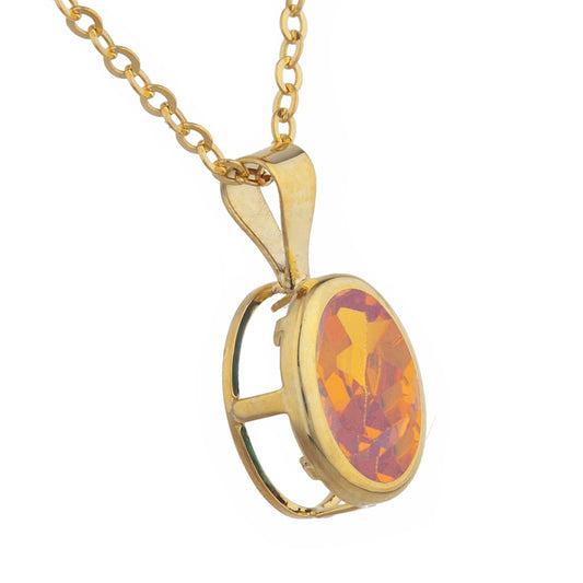 14Kt Gold Orange Citrine Oval Bezel Pendant Necklace
