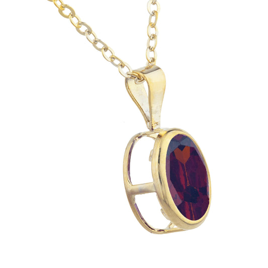 14Kt Gold Garnet Oval Bezel Pendant Necklace