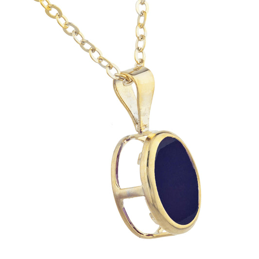 14Kt Gold Black Opal Oval Bezel Pendant Necklace