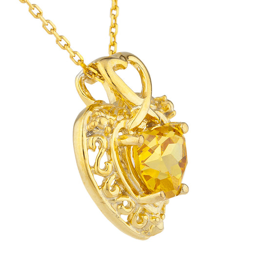 14Kt Gold Yellow Citrine Heart Design Pendant Necklace