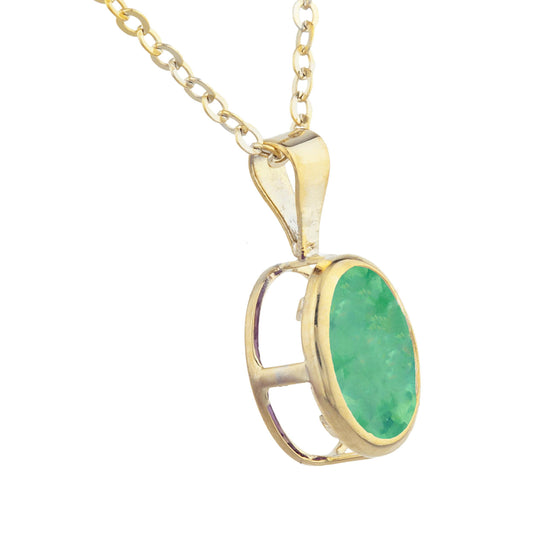 14Kt Gold Emerald Oval Bezel Pendant Necklace