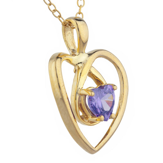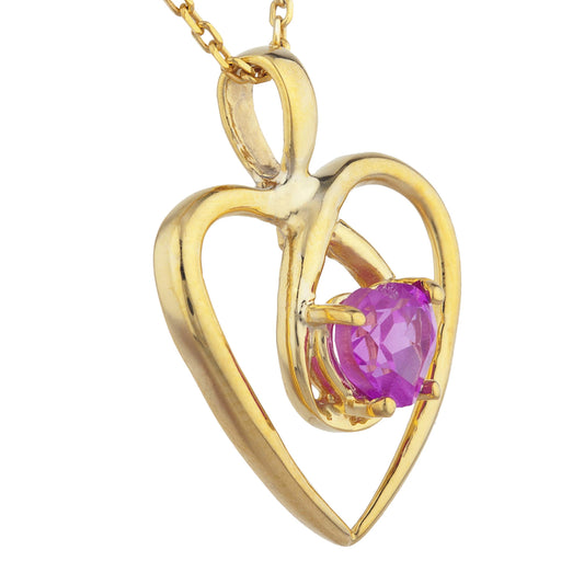 14Kt Gold Amethyst Heart Design Pendant Necklace