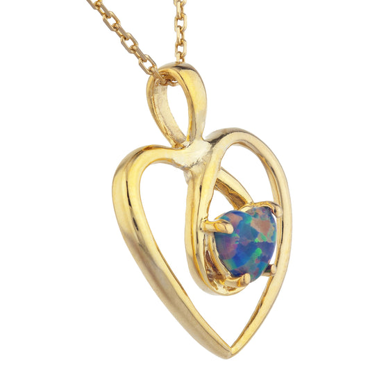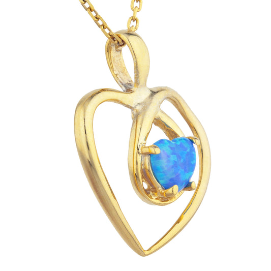 14Kt Gold Blue Opal Heart Design Pendant Necklace