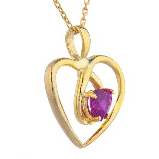 14Kt Gold Created Ruby Heart Design Pendant Necklace
